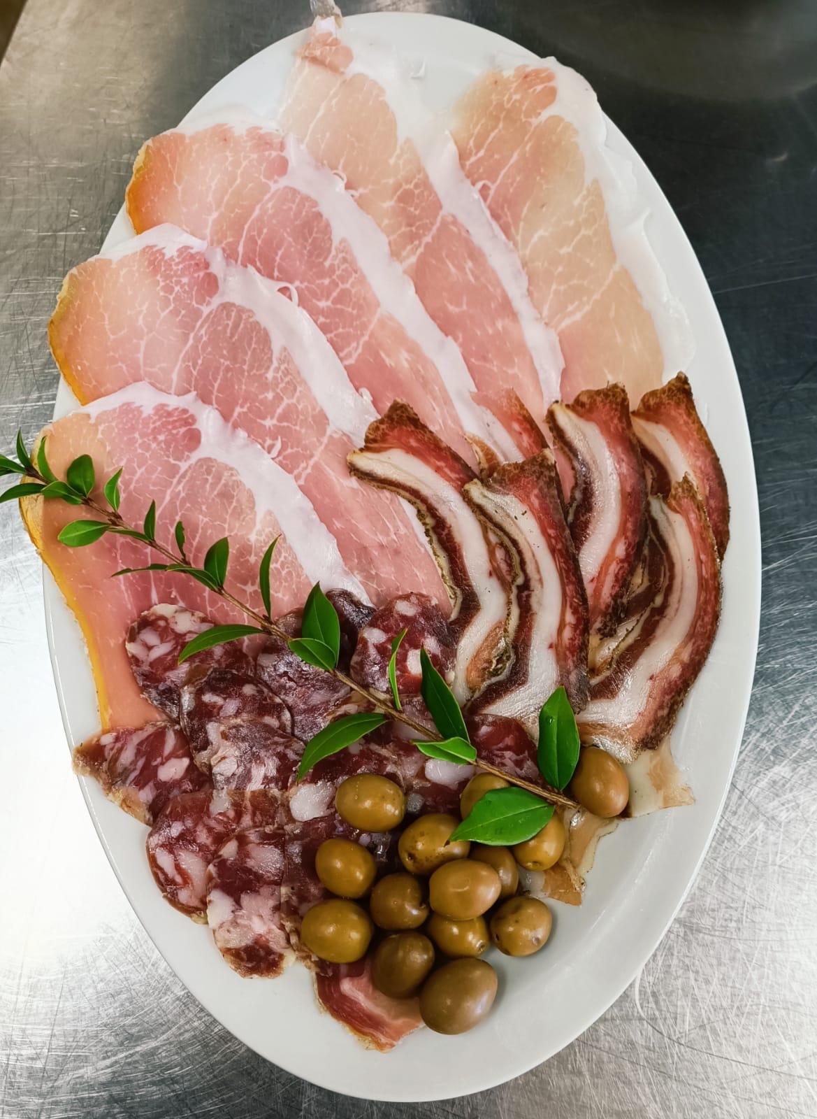 L’offerta gastronomica valorizza i prodotti dell’azienda e del territorio, con particolare attenzione alle carni, alle preparazioni artigianali e ai sapori genuini della cucina rurale.